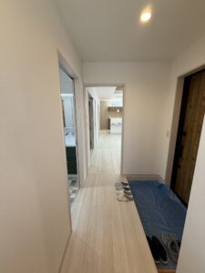 玄関から収納、水回り、LDKへとスムーズにつながる設計。