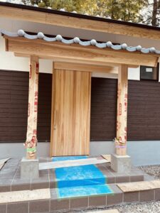 玄関は、ヒノキの引き戸✨✨✨
