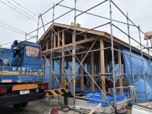 本日、大分市で平屋注文住宅の上棟です😊✨㊗️切妻屋根のお家も良いですよ〜✨👍