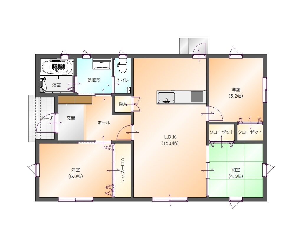 YEW-22:3~4人家族様にぴったりプラン!22.54坪/74.52㎡ 3LDK